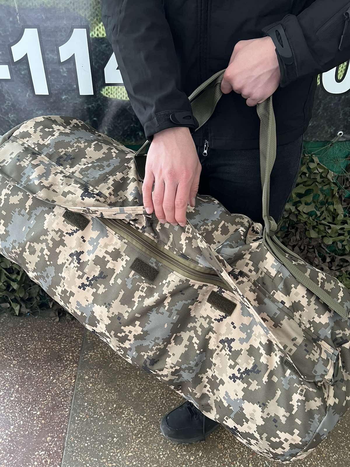 Виріб виконаний з посиленої тканини Оксфорд 600D/900D з водонепроникним просоченням. Вантажопідйомність баула становить 50 кг.