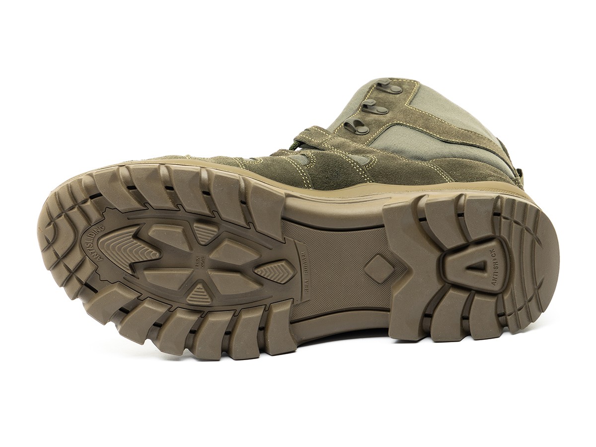 Зовнішня частина взуття вироблена з високоякісної натуральної шкіри підвищеної міцності з гідрофобною обробкою. Модель може бути, як повністю шкіряна, так і в комбінації з тканиною (товста нейлонова тканина з особливою структурою нитки, з водовідштовхувальним просоченням і з поліуретановим покриттям «кордура»).