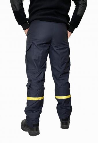 Штани з подвійним шаром тканини в області сідниць переходить в пахову область і в районі колін. Утеплені флісом. Дві бічні кишені, а також дві зручні стегнові та дві гомілковостопних кишені з клапанами на липучці. Низ штанин затягується за допомогою хлястика на липучці велкро.