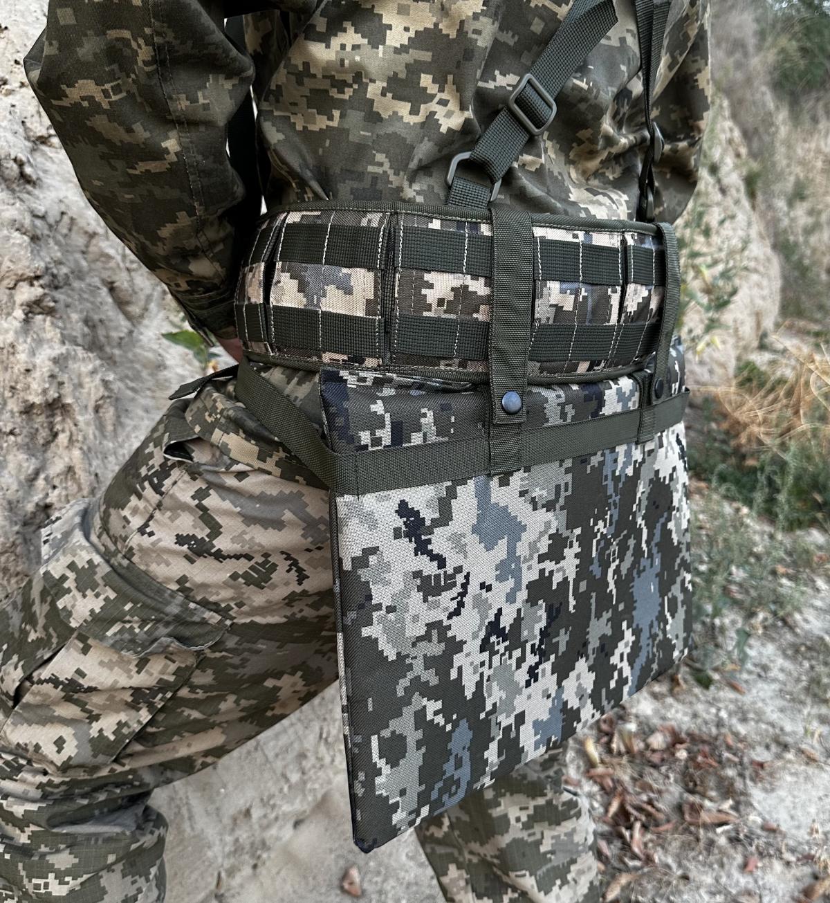 Виготовлений каремат для сидіння легко кріпиться на екіпірування за допомогою спеціальних строп і добре продуманий під систему Molle, яка використовується майже у всіх виробах тактичного спрямування. Військові часто використовують їх у парі з РПС чи поясом. Також цей