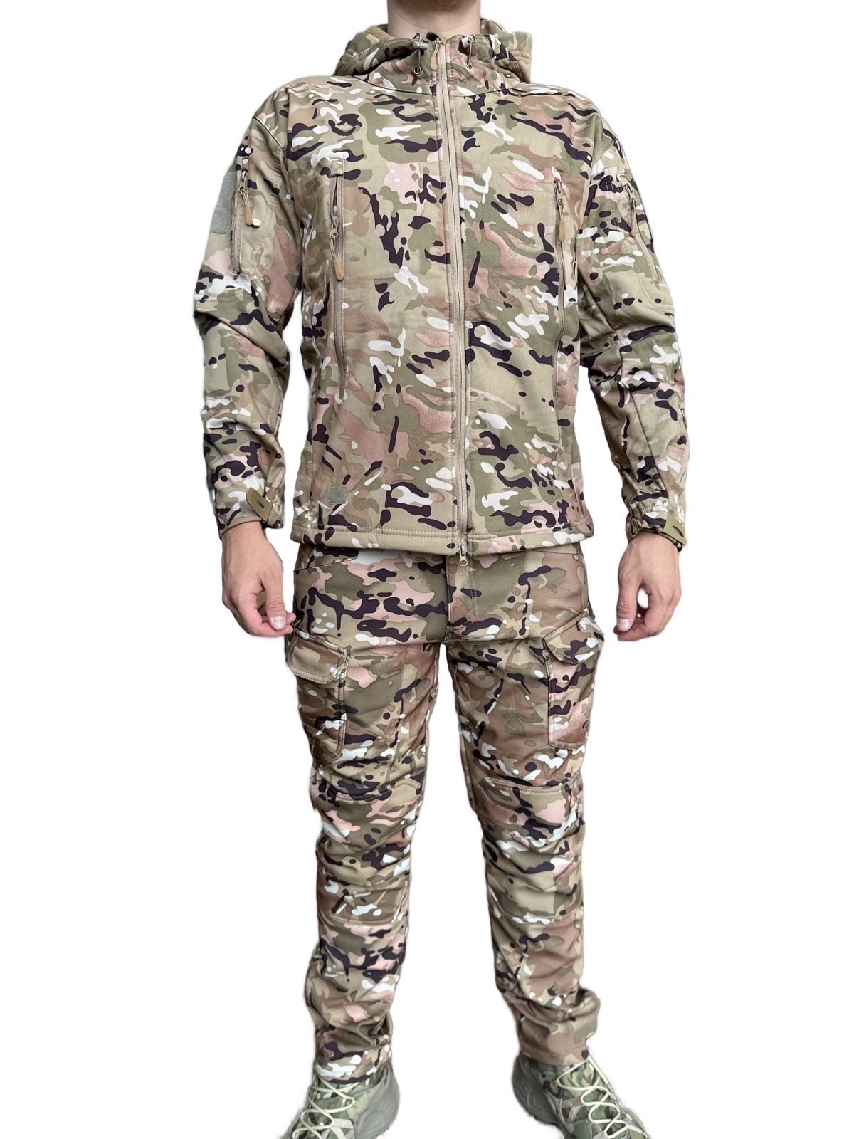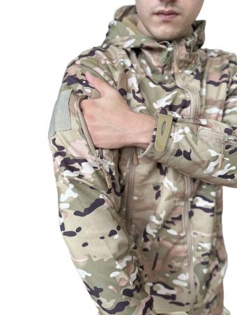Куртка зроблена з тактичної функціональної тканини Softshell, яка виготовлена на основі флісу з шаром міцного спандексу ззовні. Нижній шар тканини поглинає вологу, середній шар гріє і передає вологу на зовнішній шар, який в свою чергу виводить її назовні, захищаючи тіло від дощу та вітру;