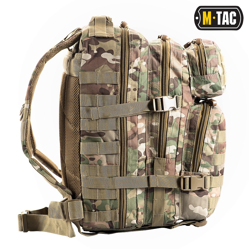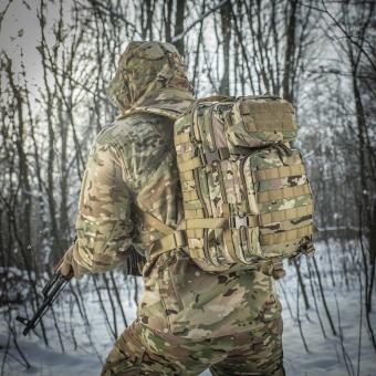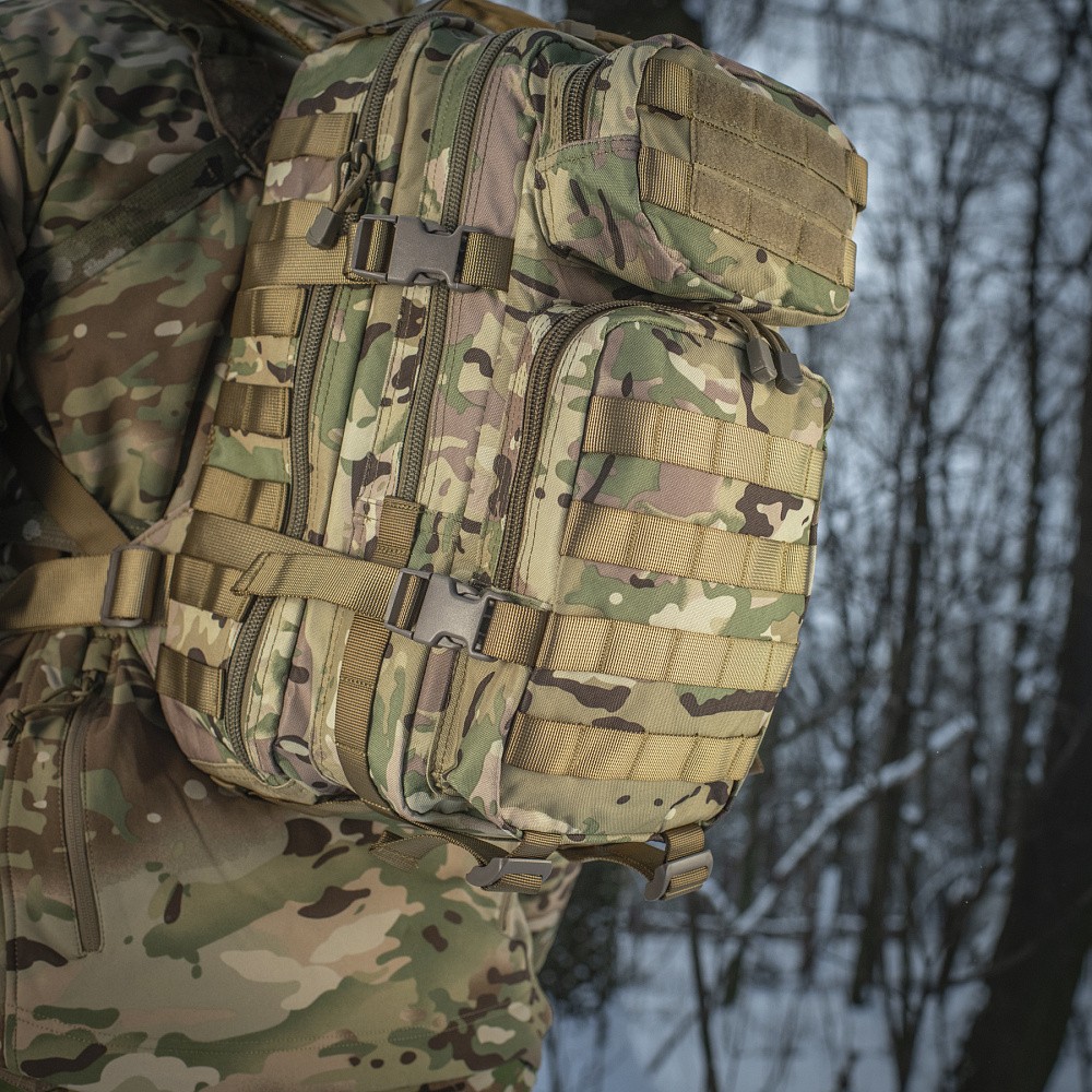 M-Tac рюкзак Assault Pack ви можете використовувати в якості міського рюкзака або ж рюкзака для невеликих походів. Обладнаний системою кріплення Molle та має два великих основних відділи на блискавках. Спереду розташовані дві додаткові кишені також на блискавці. Ремені, для перенесення рюкзака за спиною, з м'яким наповнювачем і регулюються по довжині.