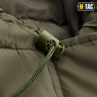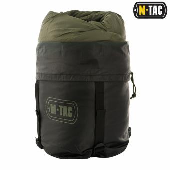 M-Tac спальник має капюшон, в який вбудований шнурок для його регулювання по об'єму. Двостороння застібка-блискавка закривається зверху спеціальним клапаном, який захистить спальний мішок від продування. У комплект до спального мішка входить компресійний (транспортувальний) мішок.