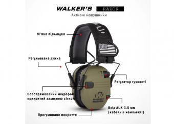 Захисні активні навушники Walker`s Razor (репліка) створені для захисту слуху від гучних вибухів, пострілів, шуму техніки що працює.