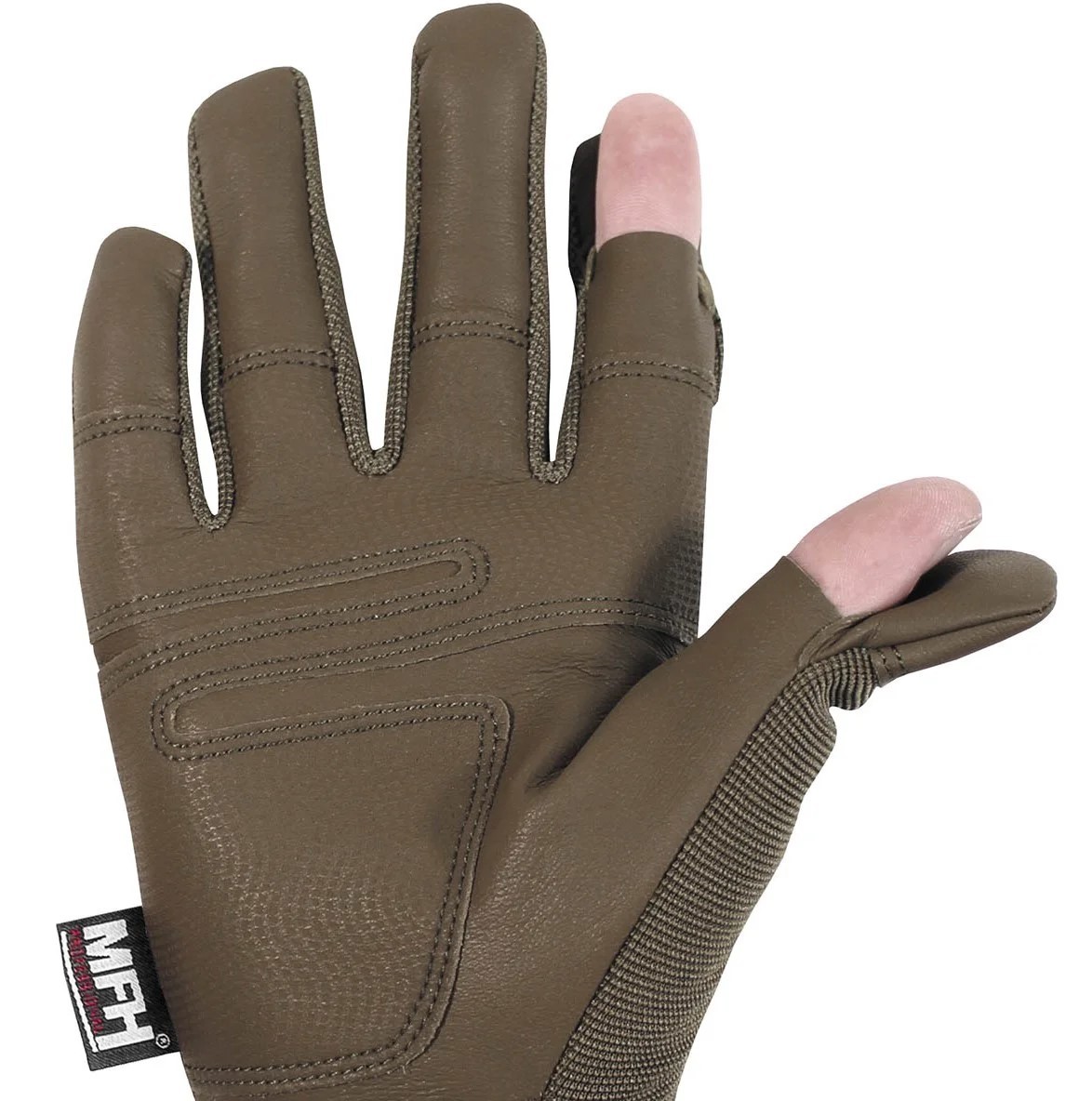Стрілецькі рукавиці MFH «Mission» з можливістю відкинути вказівний та великий пальці для більш зручного поводження зі зброєю.