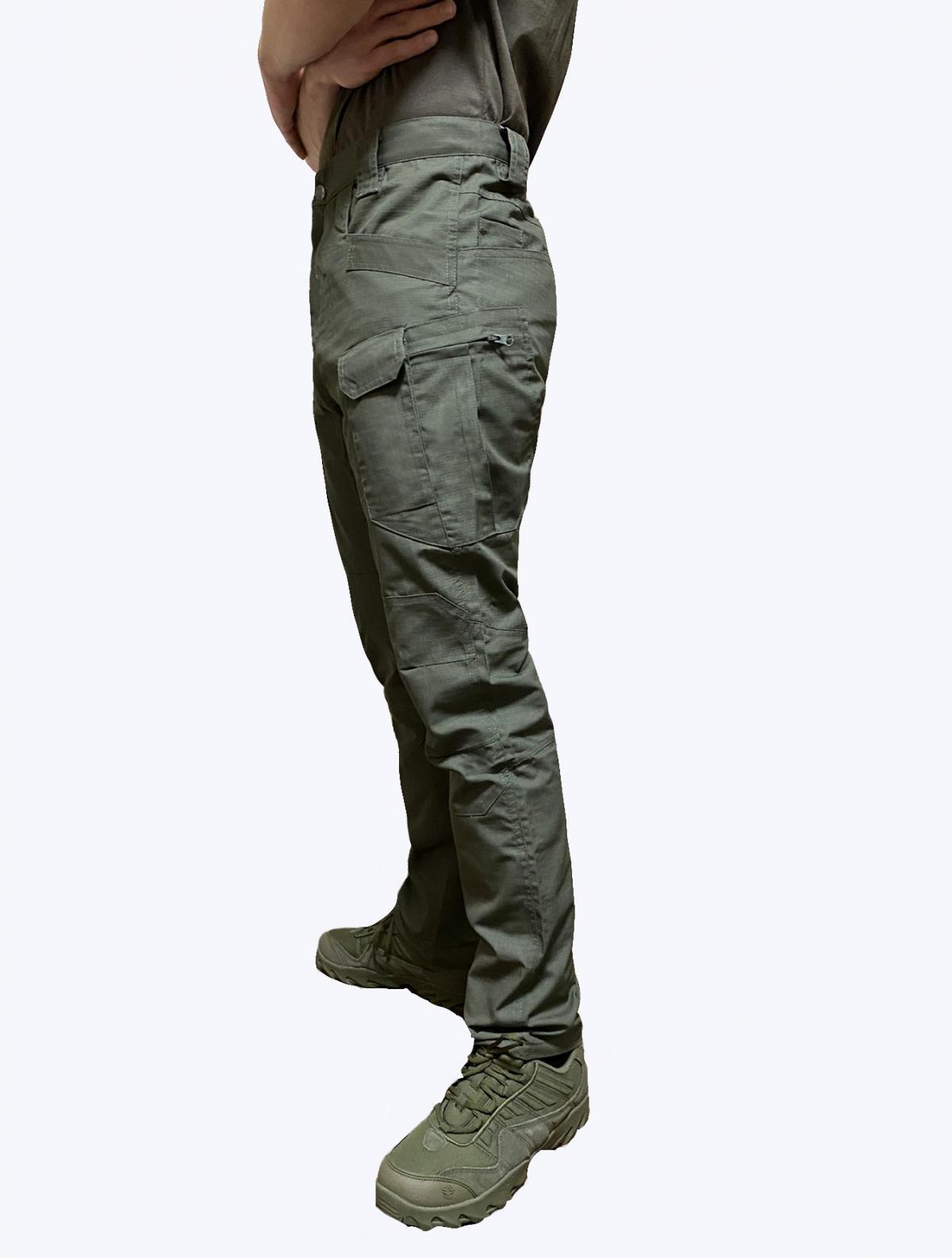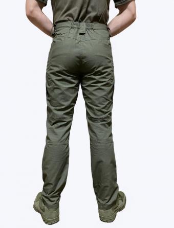 На брюках розташовані кишені: дві бічні передні "джинсові" кишені з посиленням під кліпсу, дві кишені на стегнах на змійці, дві малі накладні "телефонні" кишені (глибина ~ 14см, не враховуючи клапан), дві задні врізні кишені.