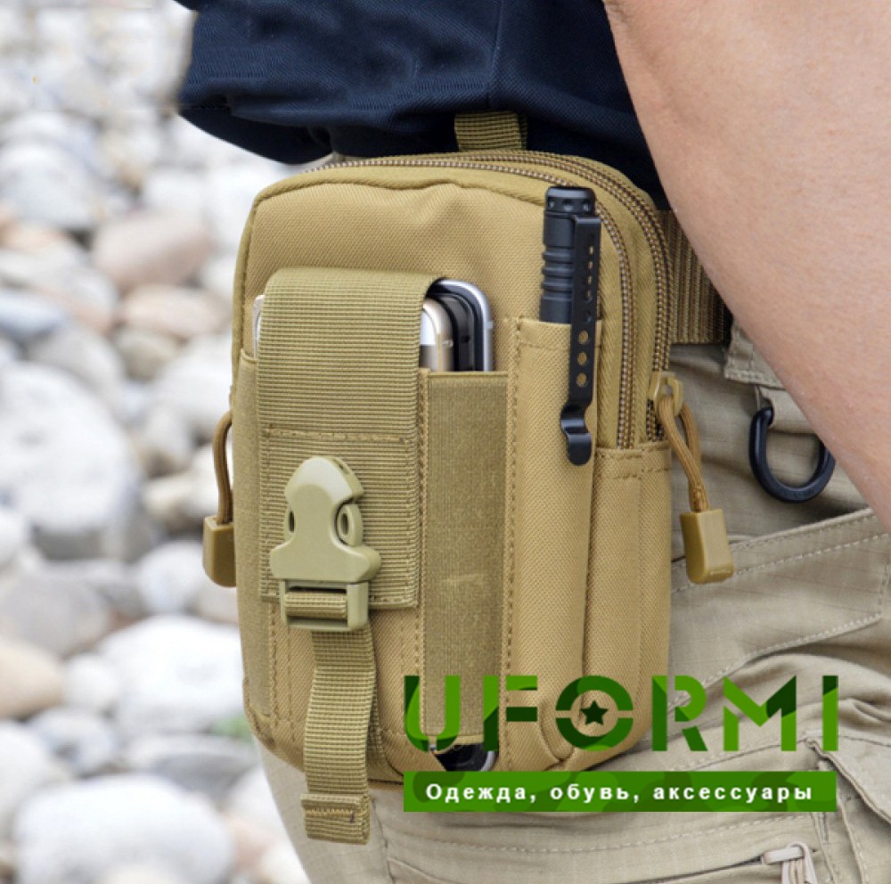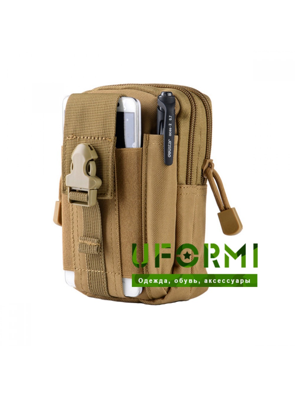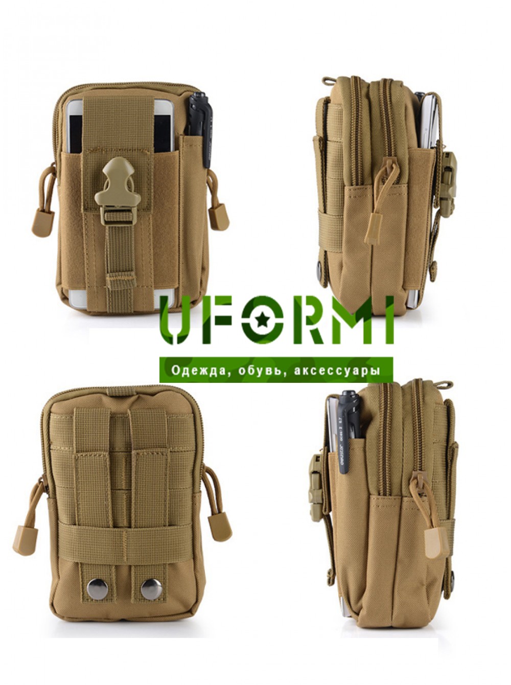 Універсальний та зручний органайзер. Два відділення, в кожному по додатковій кишеньці, зовнішні - під телефон до 5,5 дюйма (з бампером і т.д. до 5 дюймів) і під ручку. Завдяки системі Molle підсумок може бути прикріплений до будь-якого сумісного обладнання, наприклад, рюкзака, жилета або ременя.