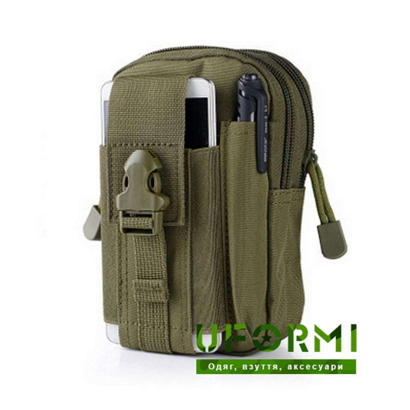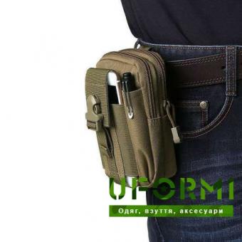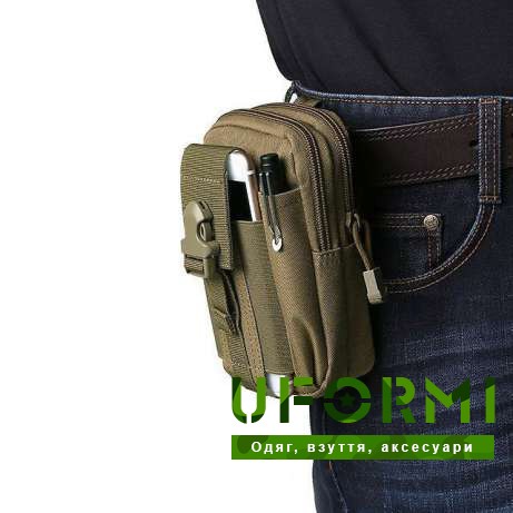 Універсальний та зручний органайзер. Два відділення, в кожному по додатковій кишеньці, зовнішні - під телефон до 5,5 дюйма (з бампером і т.д. до 5 дюймів) і під ручку. Завдяки системі Molle підсумок може бути прикріплений до будь-якого сумісного обладнання, наприклад, рюкзака, жилета або ременя.