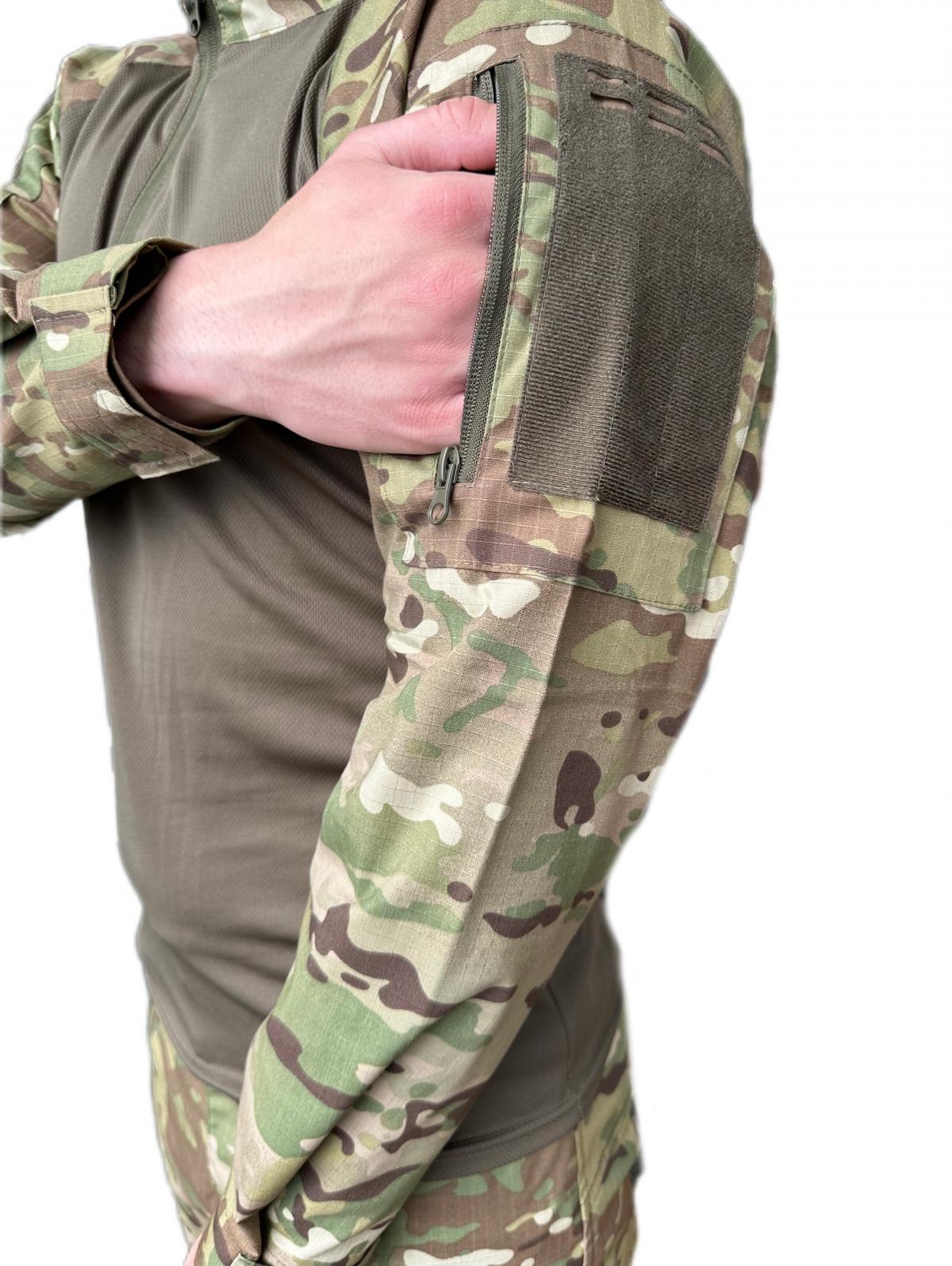 Бойова сорочка має комірець-стієчку, що застібається на блискавку, довгі рукави і оздоблена 2-ма кишенями на плечах із застібкою.